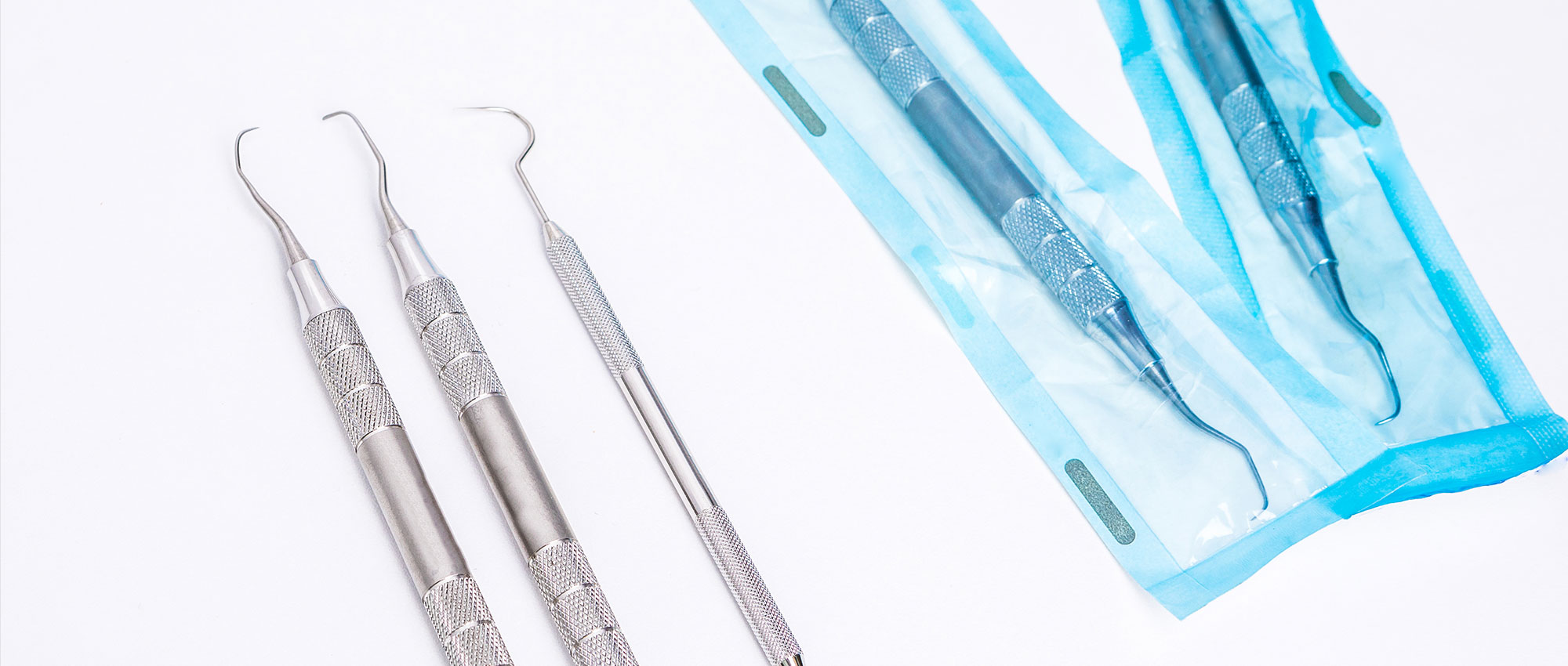 治療に使用した器具類は、専用の機器で滅菌処理をし、一つひとつ滅菌パックに密封して、治療の直前までクリーンな状態を保てるようにしております。